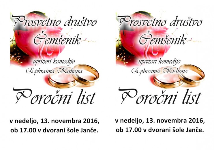 Prosvetno društvo Čemšenik – Komedija Ephraim Kishon – Poročni list sadnacesProsvetno društvo Čemšenik – Komedija Ephraim Kishon – Poročni list11.08.2016